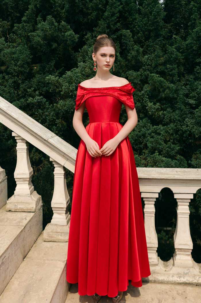 Đầm dự tiệc màu đỏ dáng xòe cao cấp
