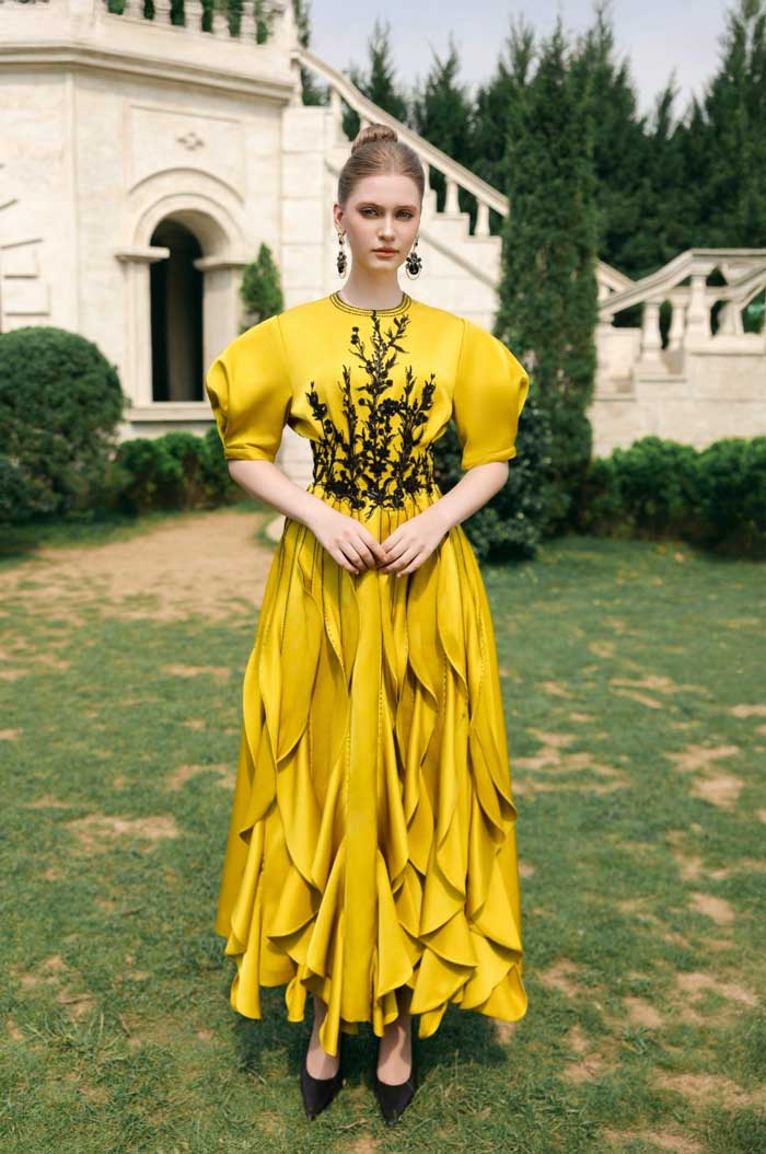 Đầm cao cấp dự tiệc gam màu vàng sang trọng