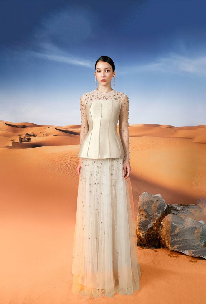 Áo dài dạ hội trung niên mang vẻ đẹp hơi hướng truyền thống là một sự kết hợp tinh tế giữa vẻ đẹp truyền thống và sự đương đại. Được lấy cảm hứng từ trang phục dân tộc Việt Nam, áo dài dạ hội trung niên tạo ra một sự hòa quyện giữa vẻ đẹp cổ điển và phong cách hiện đại.