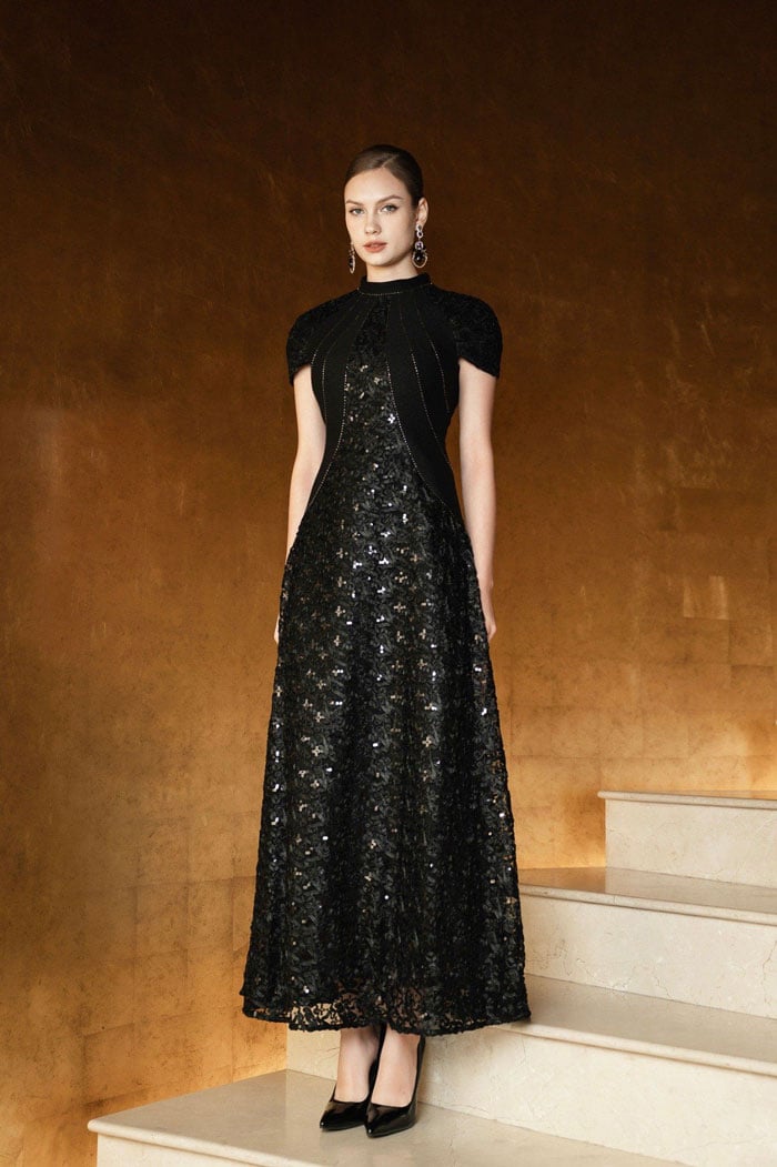 Thiết kế đầm cổ yếm dáng dài phù hợp cho quý cô diện trong nhiều dịp quan trọng