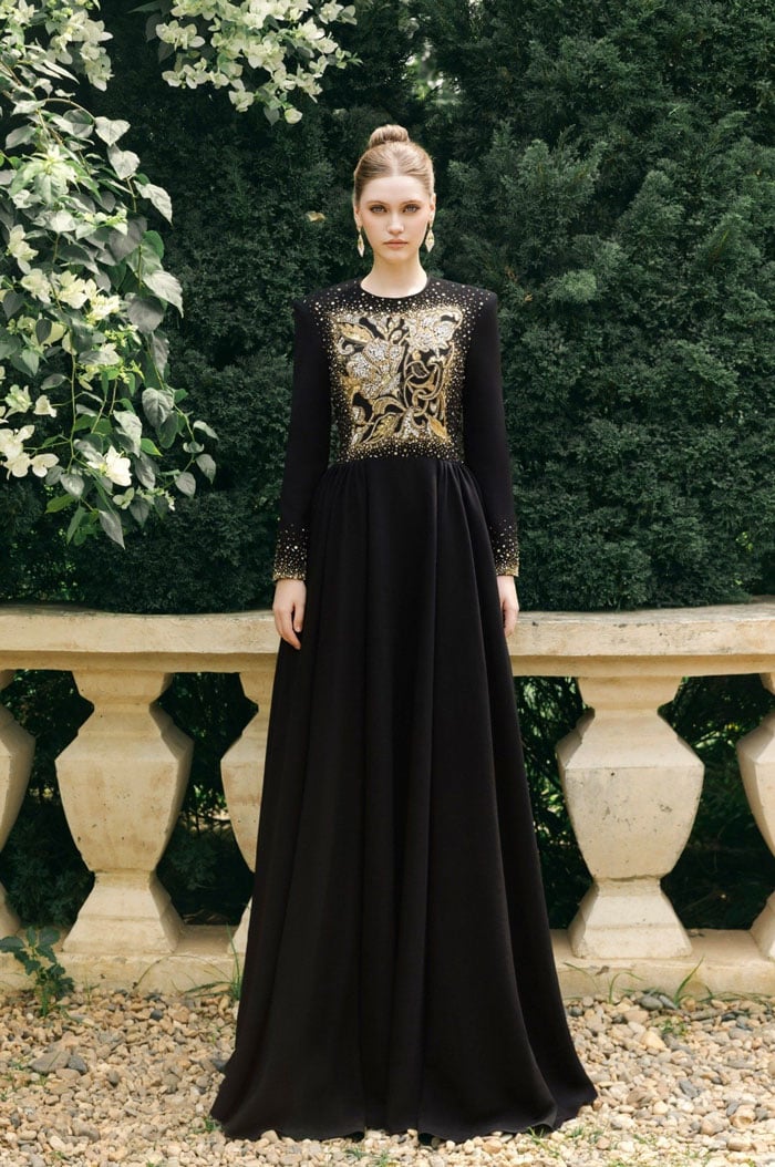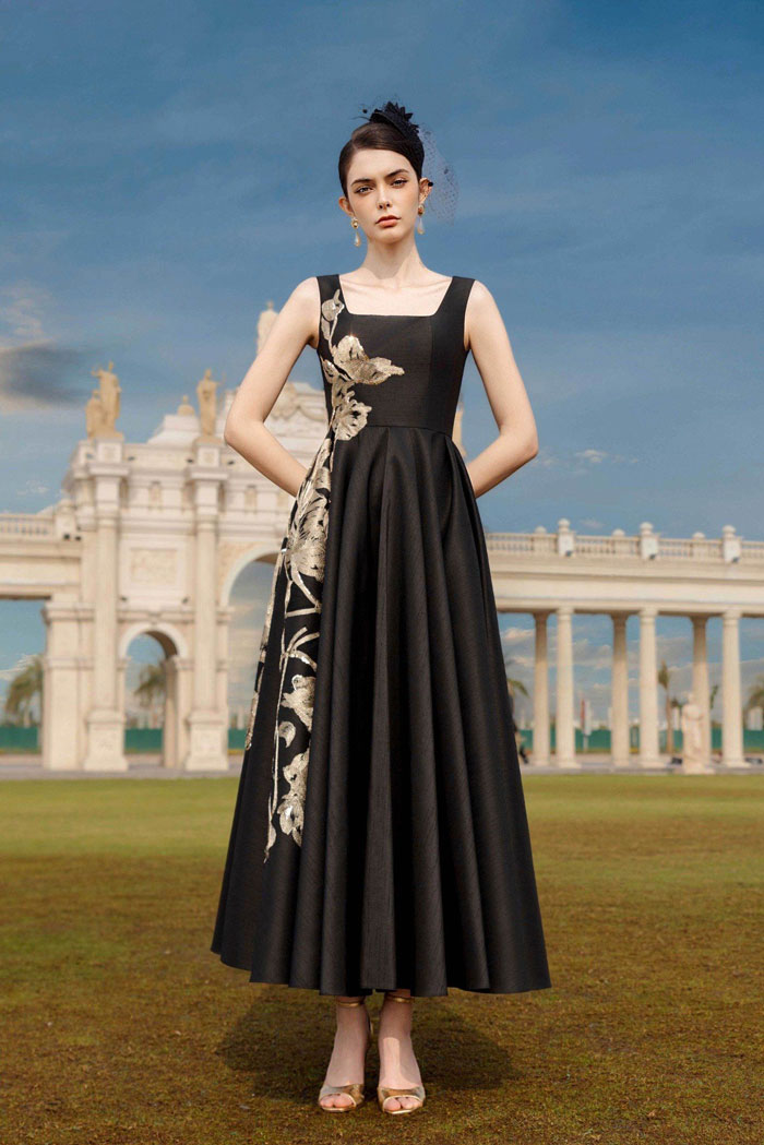 Đặc biệt, phần họa tiết được đính kết đá tự nhiên tỉ mỉ, cầu kỳ trên nền vải gấm đen sở hữu nhiều tính năng ưu việt. Ambroise xứng đáng trở thành chiếc đầm hoàn mỹ trong các buổi dự tiệc, sự kiện hoặc tham đỏ sang trọng.