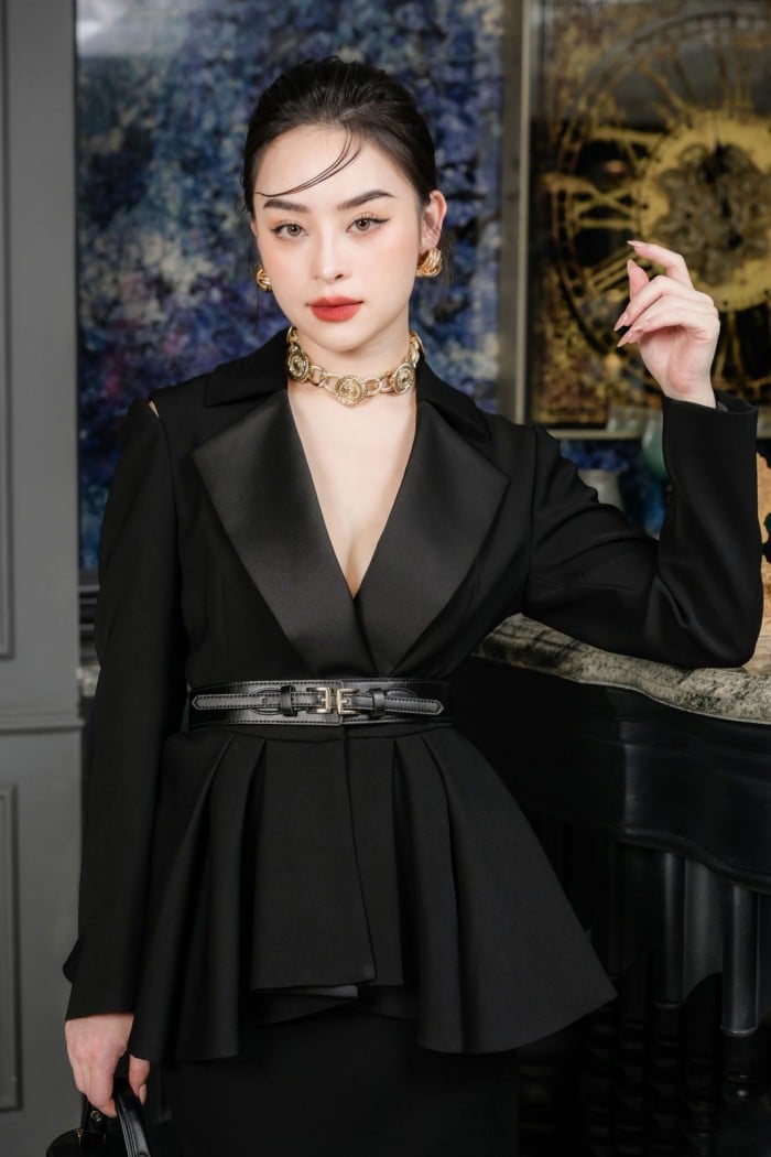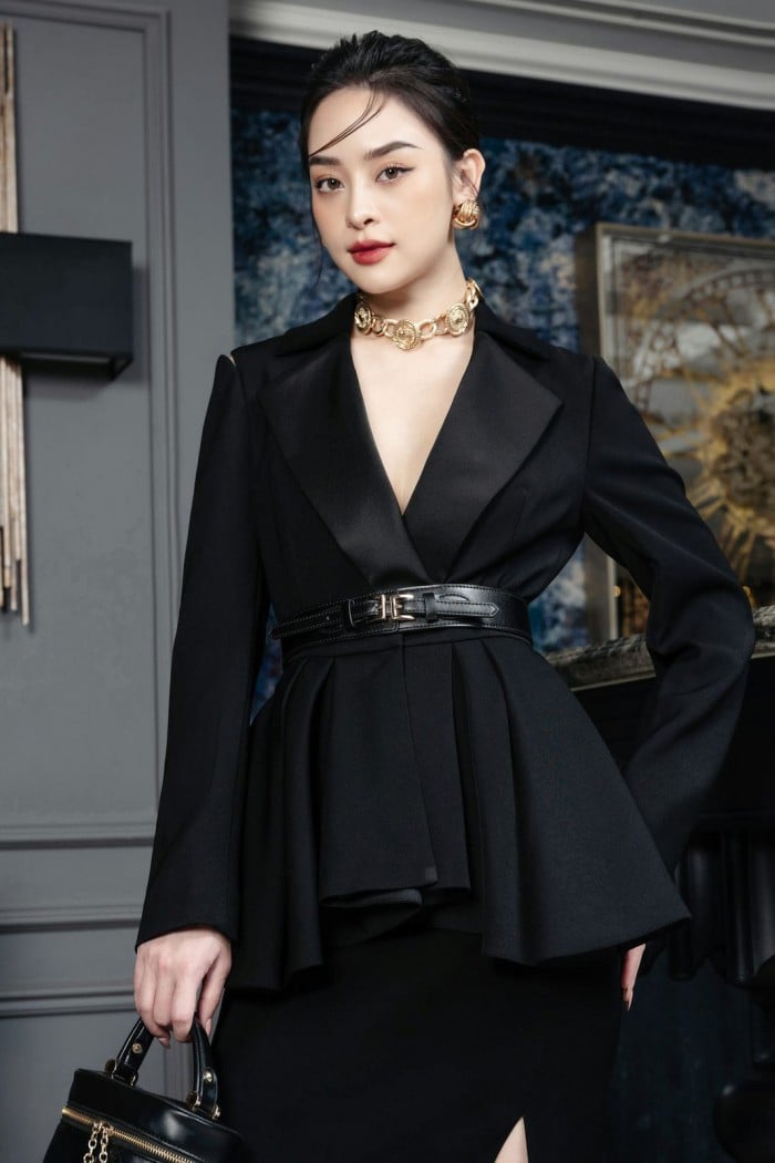 Mẫu áo vest Angeliqua là mẫu thiết kế hoàn toàn mới lạ. Khác xa với tinh thần tối giản của các mẫu áo vest trong cùng bộ sưu tập, mẫu áo này có sự đầu tư công phu hơn về thiết kế. Đây là bộ vest nữ cách điệu bậc nhất mà quý cô có thể tìm thấy trong giới thời trang. Với thiết kế tôn eo độc quyền, đây hứa hẹn là sản phẩm best seller của bộ sưu tập. Phần thân dưới chính là điểm nhấn ghi điểm của áo vest Angeliqua. Thân áo được xếp ly phồng nhiều tầng tạo hiệu ứng bồng bềnh như tà váy của nàng công chúa trong câu chuyện cổ tích. Điều này càng tạo hiệu ứng thon eo, tôn dáng tốt hơn. Phần cổ áo cũng là điểm nhấn khá đặc sắc với lớp vải bóng tạo hiệu ứng thị giác bắt mắt. Một trong những điểm vô cùng độc đáo ở mẫu vest này, tạo nên sự mềm mại đó là phần cut-out ở vai áo. Tất cả tạo nên một thiết kế có 1-0-2 mà nàng không thể tìm thấy ở bất cứ nơi nào.