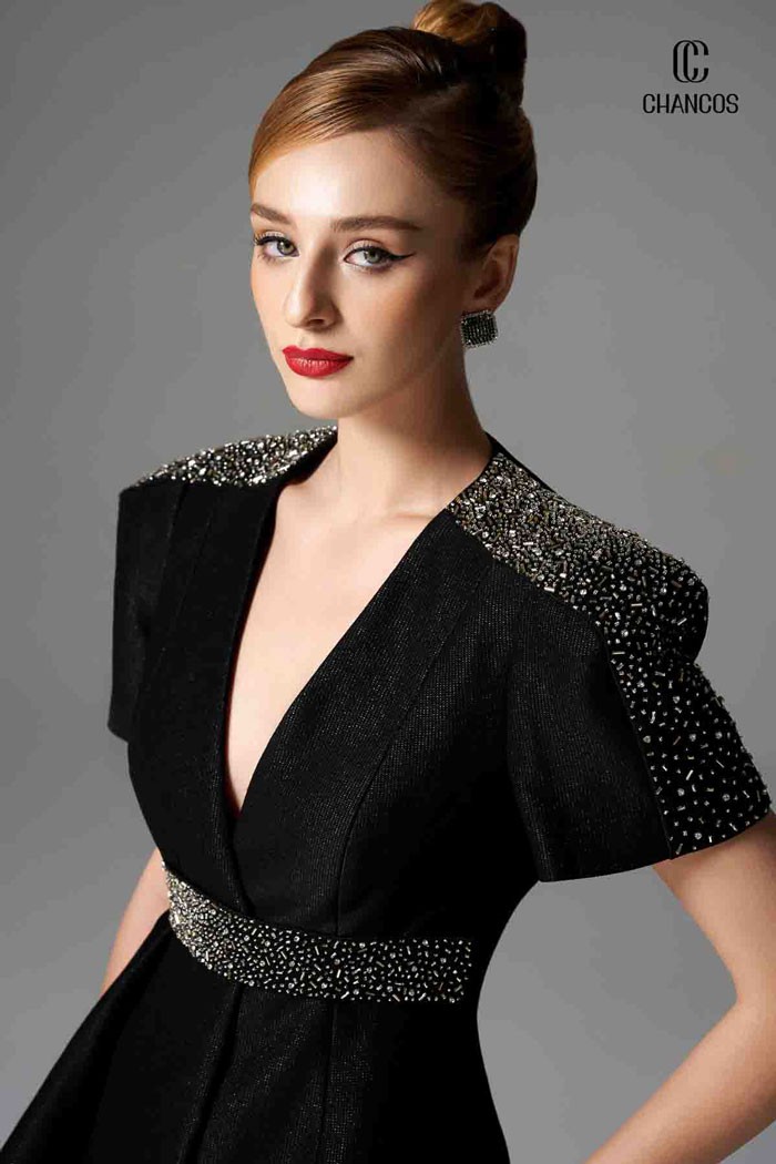 Áo Black Cuillin, được nhà thiết kế Chancos may theo dáng áo peplum công sở, là sự kết hợp tinh tế giữa sự thanh lịch và tính thời thượng. Với điểm nhấn vòng hai và cổ chữ V sâu, áo mang lại sự cuốn hút đầy tự tin. Phần vai vuông cứng cáp tạo nên cảm giác quyền lực, quý phái và sang trọng. Tuyệt chiêu này giúp tôn lên vẻ ngoài phong cách nữ doanh nhân trẻ trung, ấn tượng. Điểm nổi bật của thiết kế là sự kết hợp độc đáo giữa đá và thủ công tinh xảo. Những dải đá đính to bản tại phần cầu vái và eo, mang đến hiệu ứng lấp lánh thu hút. Sự ánh sáng phản chiếu trên các viên đá này khiến cho chiếc áo Black Cuillin trở nên rực rỡ và quyến rũ. Không chỉ dừng lại ở đó, phần peplum của áo còn được cách điệu bằng kỹ thuật gấp nếp vạt lệch, tạo nên một điểm nhấn độc đáo. Sự kết hợp này tạo nên vẻ ngoài thời trang cao cấp, đồng thời thể hiện phong cách riêng biệt và cá nhân của người mặc. Với thiết kế áo peplum đính đá thủ công này, nữ doanh nhân sẽ tỏa sáng trong mọi dịp, tự tin và quyến rũ với sự kết hợp hoàn hảo giữa phong cách và cái đẹp tự nhiên.