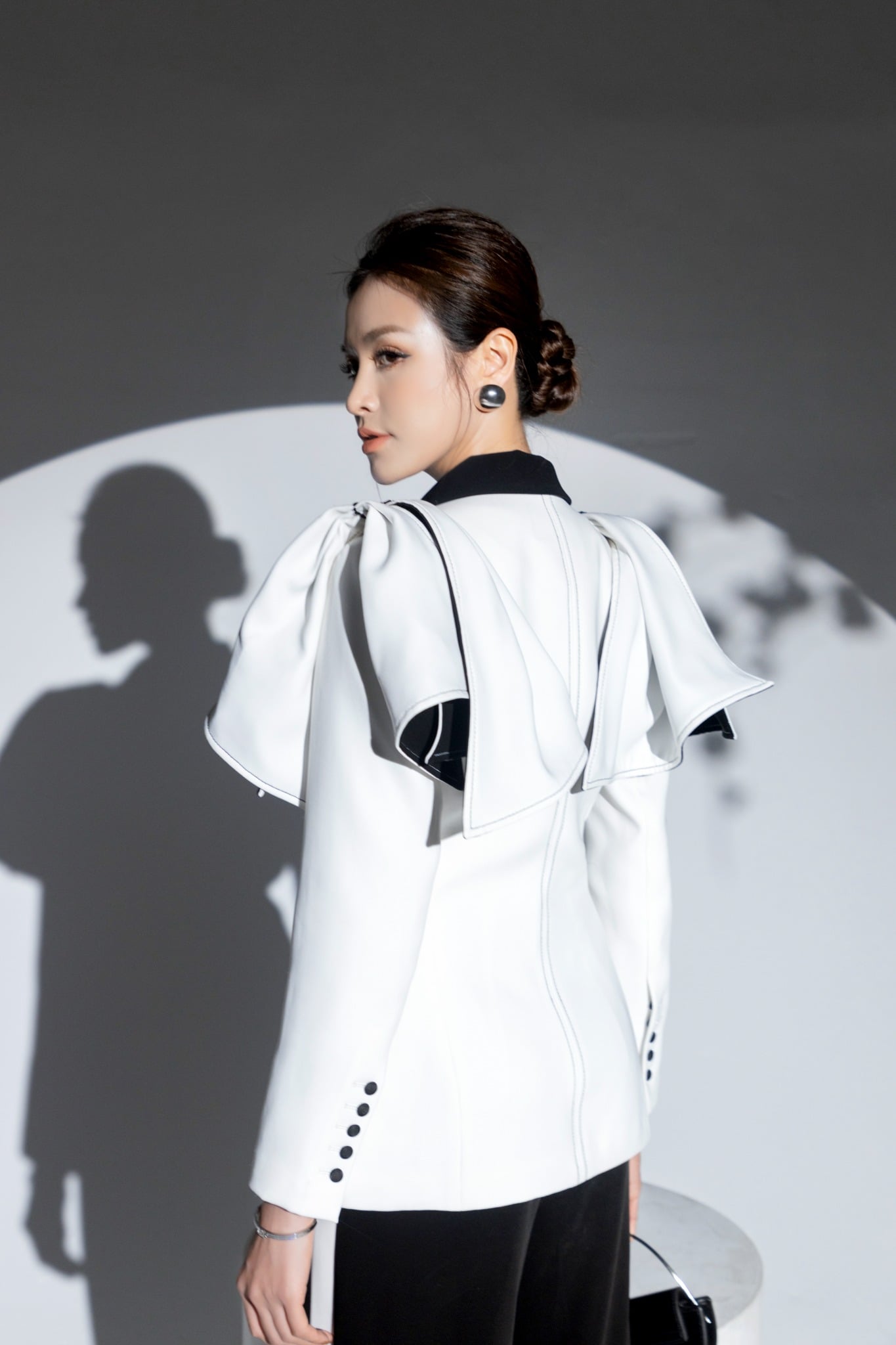 Với gam màu trắng tinh khôi kết hợp cùng màu đen huyền bí, thiết kế đầy mới lạ của áo Mileto sẽ giúp quý cô có được một outfit dự tiệc vô cùng đẳng cấp. Với gam màu trắng đen cơ bản, quý cô có thể linh hoạt trong cách mix đồ với áo blazer Mileto. Một chân váy bút chì hay chân váy tutu sẽ giúp quý cô vừa thanh lịch và nữ tính. Sự ngọt ngào trong các mẫu chân váy này nên mix cùng các đôi cao gót màu đen hoặc trắng để tạo nên một bộ đồ hợp gu nhất.
