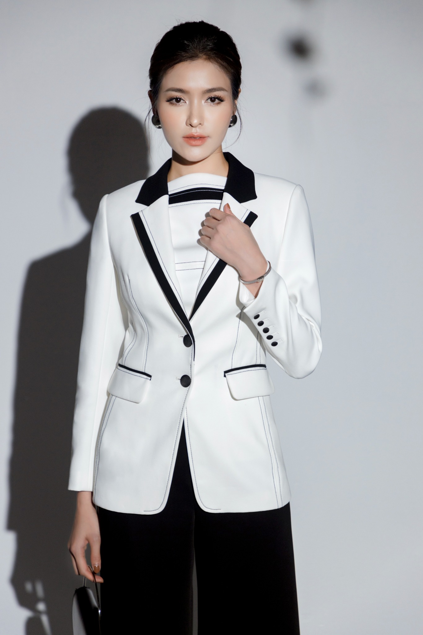 Áo Mileto được thiết kế với màu trắng chủ đạo của một chiếc blazer sang trọng. Sự kết hợp màu sắc thời thượng đan xen cùng kiểu dáng lạ mắt khiến chiếc áo Mileto trở thành item mà quý cô nào cũng muốn sở hữu. Sự đan xen khéo léo giữa các đường chiết eo màu đen trên nền vải trắng tạo ra hiệu ứng thời trang phá cách vô cùng mới mẻ. Không còn là chiếc blazer đơn sắc với gam màu trắng tinh, áo Mileto đã có sự pha trộn màu sắc vô cùng tinh tế.