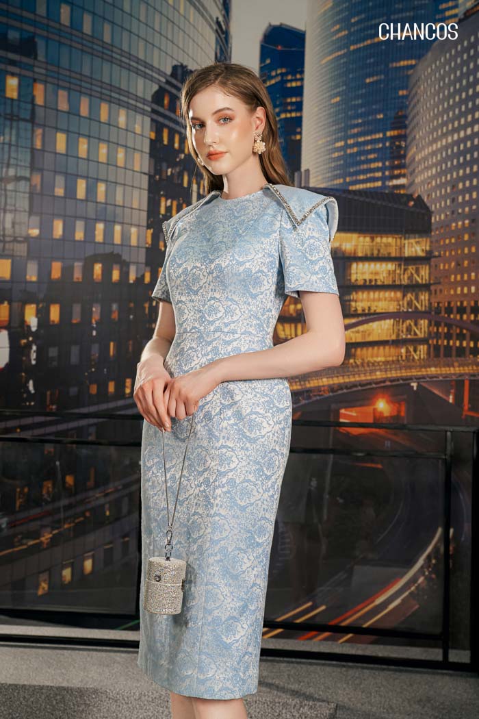 Đầm Eirlys không chỉ đơn thuần là một trong những mẫu đầm ôm dáng dài, mà còn là đại diện cho nét đẹp quyến rũ và sự tự tin. Với thiết kế dáng ôm midi, cổ tròn cao và tay ống lửng, thiết kế thành công đem truyền tải phong cách tinh tế và nữ tính cho người mặc. Một trong những điểm nổi bật và độc đáo của đầm Eirlys chính là chi tiết đắp vai tinh tế. Được thiết kế với việc đắp vạt tạo cầu vai độc đáo, chi tiết này đã tạo điểm nhấn đặc biệt cho đầm. Đồng thời làm nổi bật diện mạo lộng lẫy và quý phái của người phụ nữ. Lớp viền vạt đính đá là một yếu tố được người nghệ nhân Chancos thêm vào đầm Eirlys, tạo thành sức hút khó cưỡng. Hàng trăm viên đá tự nhiên được sắp xếp một cách tỉ mỉ qua hàng trăm giờ lao động, khiến cho bộ cánh Eirlys luôn kiêu hãnh và mỹ miều. Đầm Eirlys vừa mang lại sự gợi cảm với dáng ôm, vừa tạo cảm giác thoải mái nhờ vào chất liệu cao cấp và thiết kế cân đối. Đường nét trên chiếc đầm được cắt may tỉ mỉ và tinh tế, tôn lên những đường cong nữ tính và khéo léo giấu nhẹm những khuyết điểm nhỏ.