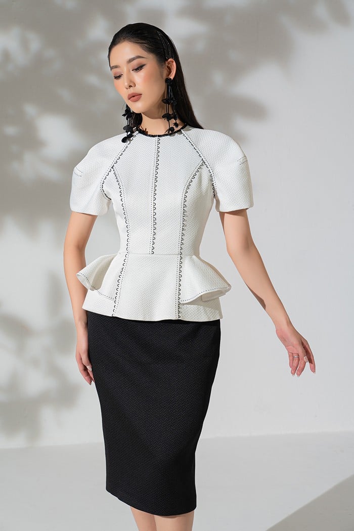 Nếu nàng yêu thích đồ hiệu nữ tối giản nhưng tinh tế, Laelia sẽ là lựa chọn tuyệt vời thể hiện phong cách mộc mạc nhưng cũng vẫn sang trọng và quý phái. Với kiểu dáng peplum thiết kế ôm sát 3 vòng cơ thể và ruching tại vòng eo tạo nên dư âm mới lạ cho thiết kế, tôn lên đường cong quyến rũ đầy nữ tính của người mặc. Chất liệu gấm họa tiết dệt nổi zig zag, mặt vải ánh lì cao cấp, lên form tốt, ít nhăn; Laelia sở hữu vẻ đẹp thời thượng và sành điệu. Khi sự tối giản trong thời trang ngày càng được đề cao, màu trắng mix đen thanh lịch và cá tính trở nên thịnh hành, giúp cái Tôi của quý cô được bộc bạch một cách tự nhiên, không quá cầu kỳ hay phô trương. Sở hữu nhiều đặc tính nổi bật, đầm Laelia sẽ là một trong các style thời trang nữ dẫn đầu xu hướng và luôn là một lựa chọn thời trang không bao giờ lỗi thời.