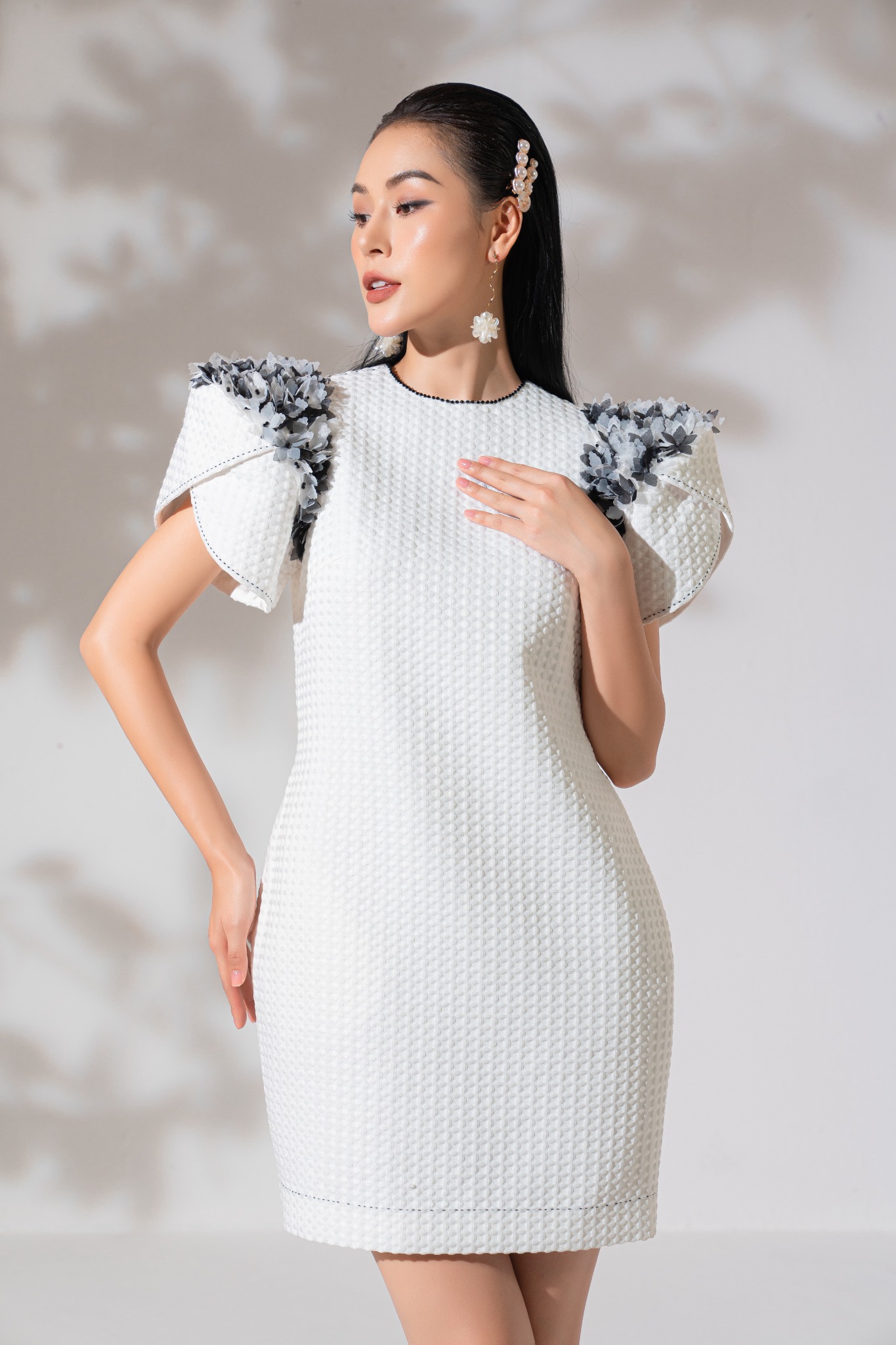 Đầm Rive được thiết kế với dáng suông ôm vô cùng hiện đại. Nếu quý cô không muốn diện những chiếc đầm dáng suông rộng thùng thình với các đường may thẳng tuột từ vai đến gối thì chắc chắn chiếc đầm Rive sẽ khiến nàng hài lòng. Với thiết kế dáng suông vừa phải, không quá rộng mà vẫn có điểm nhấn tôn eo nên giúp quý cô trở nên nữ tính và khoe được đường cong cơ thể tối đa. Với chiều dài trên gối, đầm Rive không chỉ giúp nàng khoe được đôi chân dài mà còn mang lại vẻ đẹp quyến rũ và trẻ trung hơn. Cùng với đó là cổ tròn truyền thống kết hợp với tay xếp nếp xòe bồng vô cùng độc đáo. Chính cách sáng tạo này mà chiếc đầm trở nên cá tính hơn. Cũng vì lẽ đó mà nàng có thêm mẫu đầm độc bản để tự tin tỏa sáng với phong cách riêng. Không chỉ vậy, các nhà thiết kế đã khéo léo thêm đính các họa tiết thêu nổi 3D để biến đầm Rive trở thành mẫu đầm dự tiệc sang trọng nhất. Hàng trăm bông hoa được cắt ghép và đính nổi trên phần vai và tay tạo thành dải hoa mềm mại và quyến rũ. Cùng với đó là các viên đá màu đen được thêu đính tỉ mỉ tạo viền ở cổ và vạt đầm. Chính điều này đã khiến chiếc đầm Rive trở nên độc đáo không thiết kế đơn thuần nào sánh kịp.