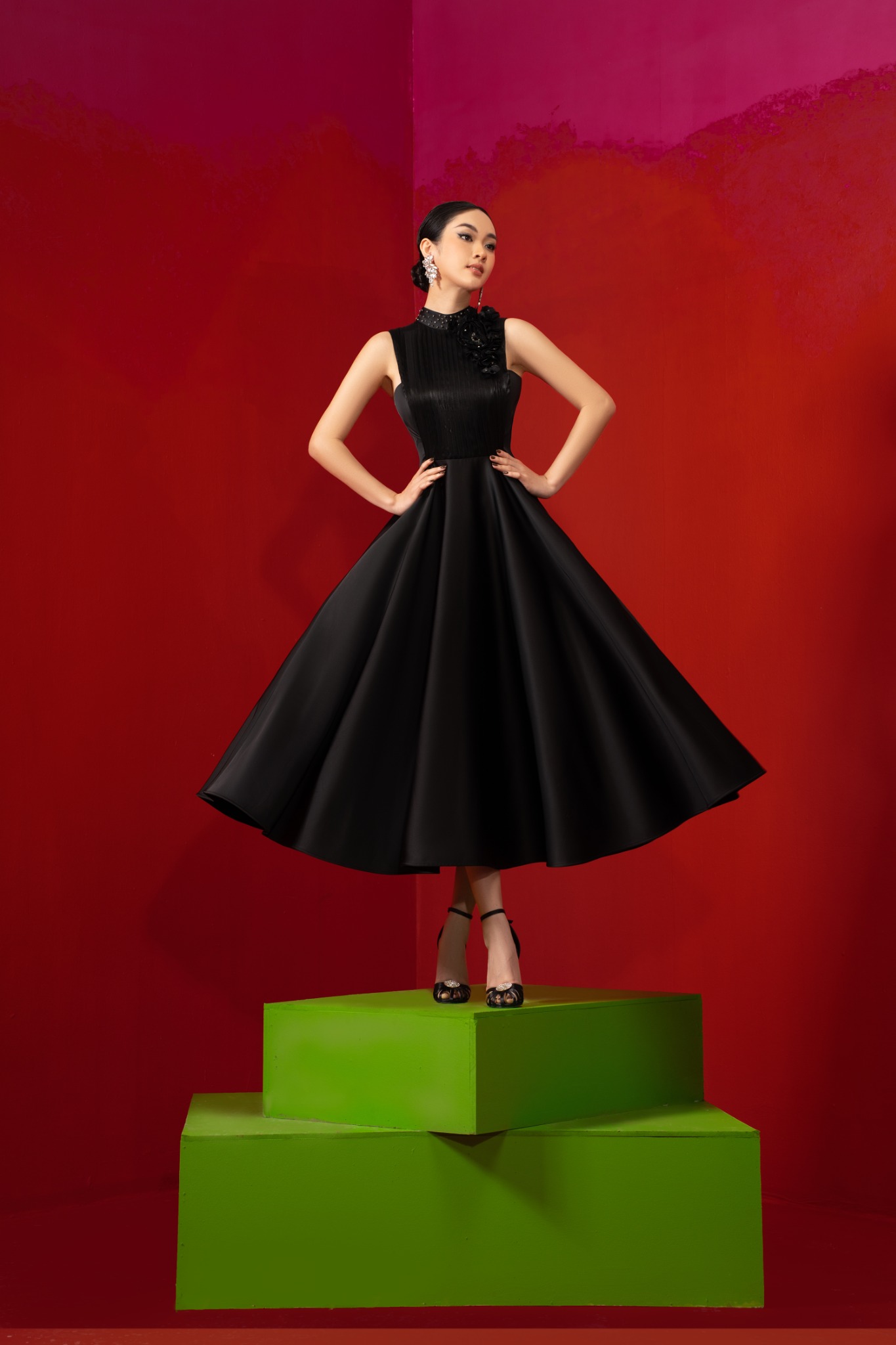 Dù xuất hiện ở sự kiện nào, quý cô cũng trở thành nhân vật nổi bật, chiếm trọn spotlight. Thêm một chút phụ kiện cùng gam màu tiểu thư quý phái như bông tai và cao gót màu đen. Chắc chắn không một ai có thể vượt qua được nét đẹp sang trọng, yêu kiều của quý cô khi diện đầm Toulouse. Đỉnh cao của thời trang cao cấp chính là biến phái đẹp trở thành điểm sáng mê hoặc lòng người. Và đầm Toulouse đã thành công nhờ vẻ đẹp ấy.